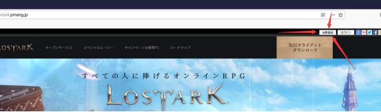 第三步:加速成功后,打开日服官网:https://lostark.pmang.jp/ 点击网站右上角的会员登陆,然后点击注册进行注册 (建议使用谷歌浏览器)